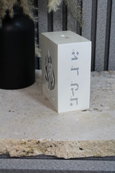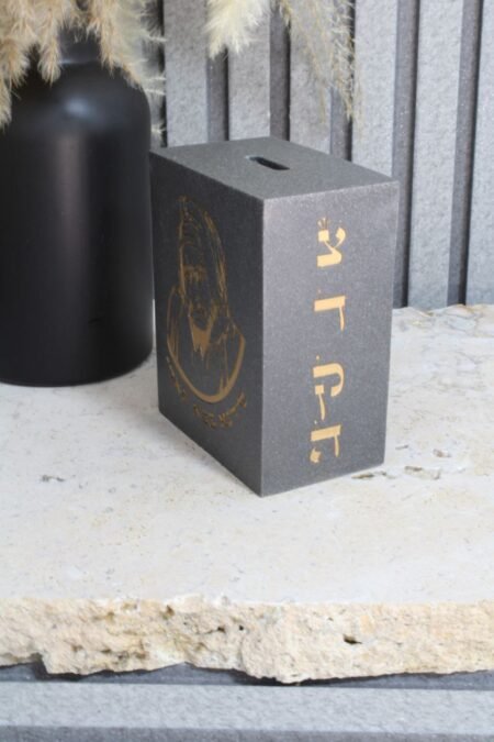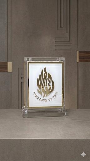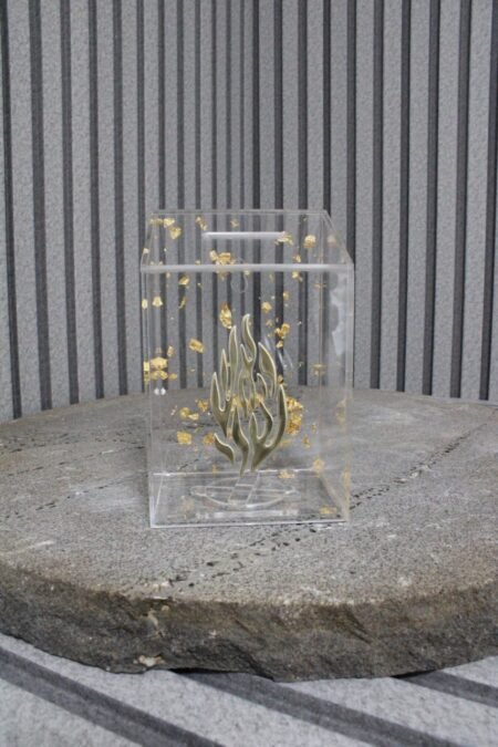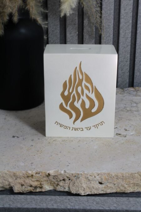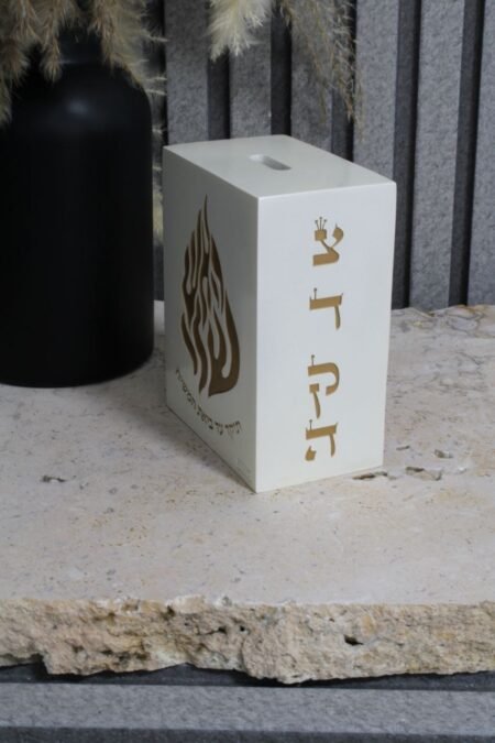 קופת צדקה "האש שלי תוקד" זכוכית ,זהב