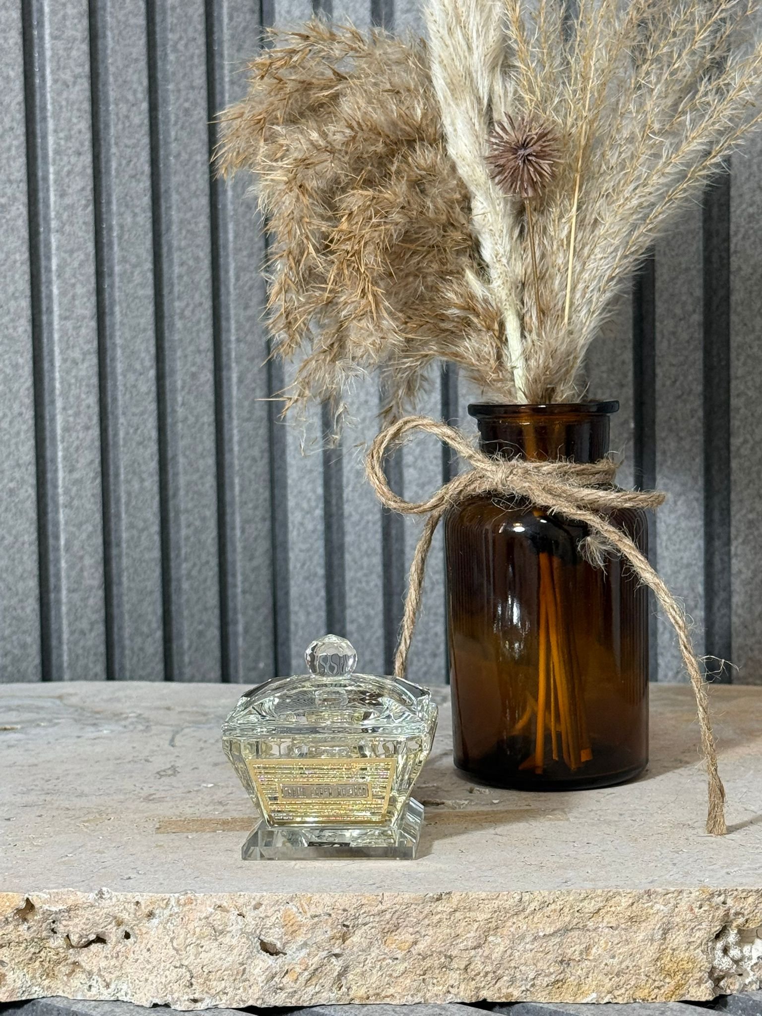 מלחיה קריסטל עם מכסה עשוי זכוכית.
