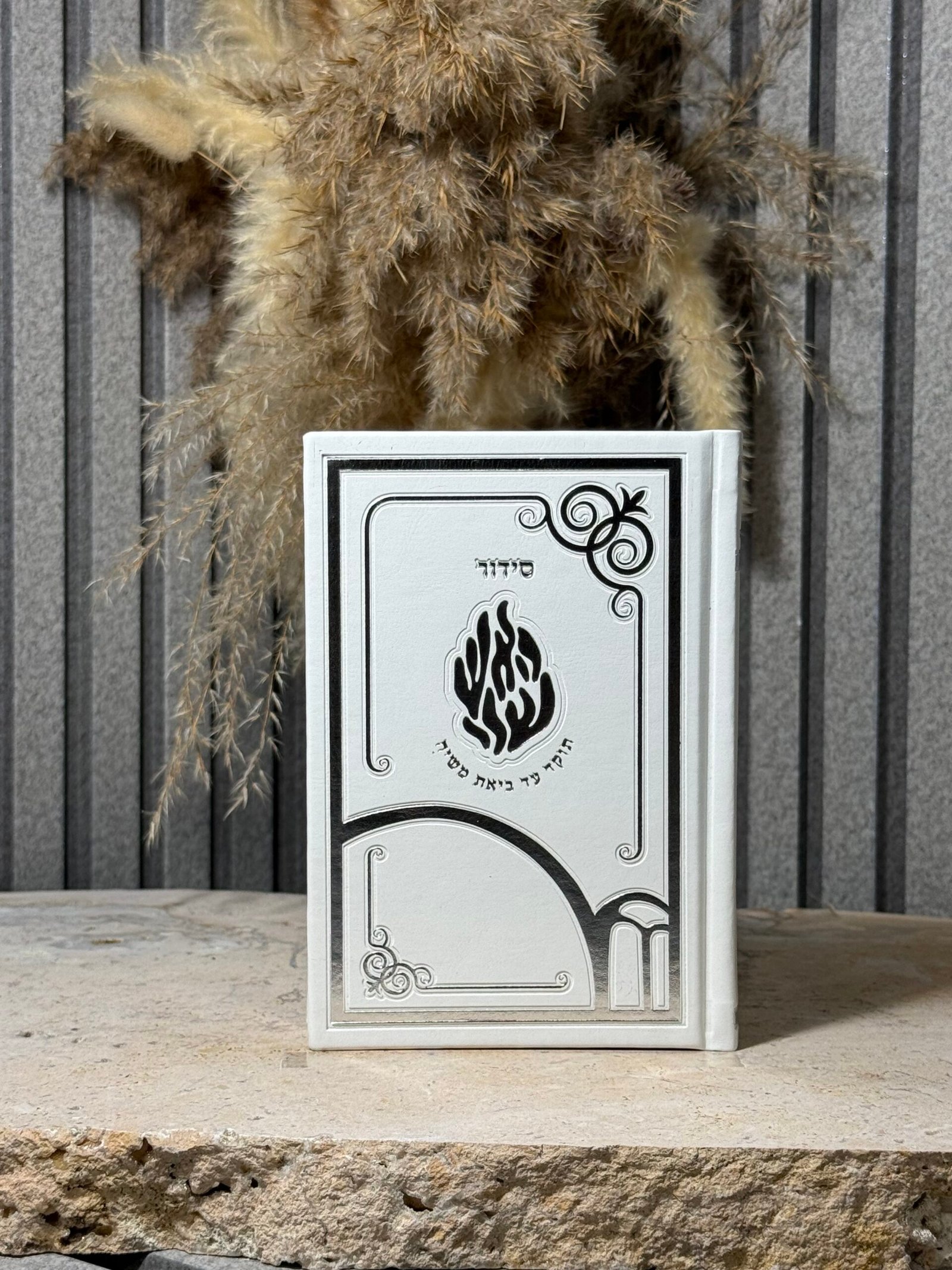 סידור "האש שלי תוקד" ,בצבע לבן בעיצוב דמוי עור יפיפה.
