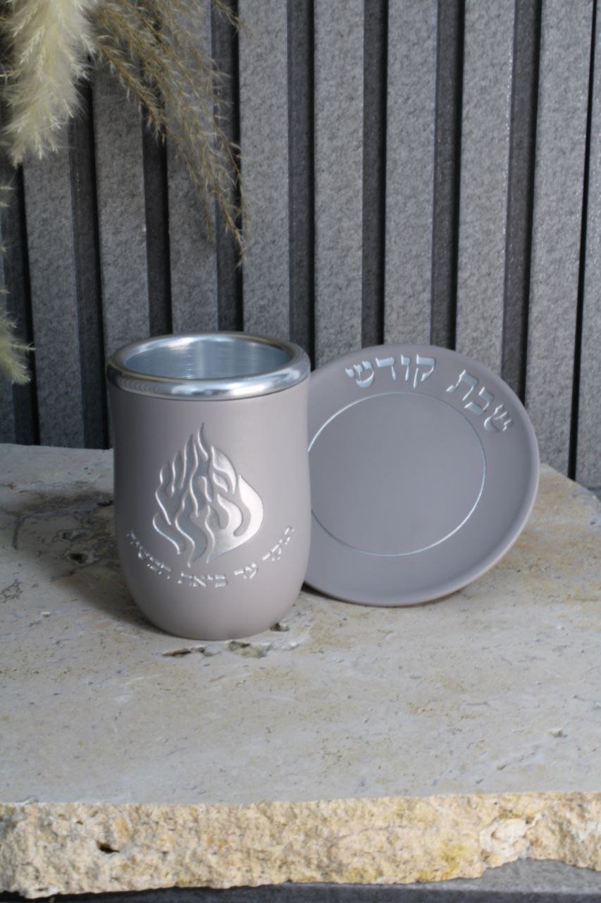 קופת צדקה האש שלי העשויה מפולרזין בצבעי לבן וכסף.