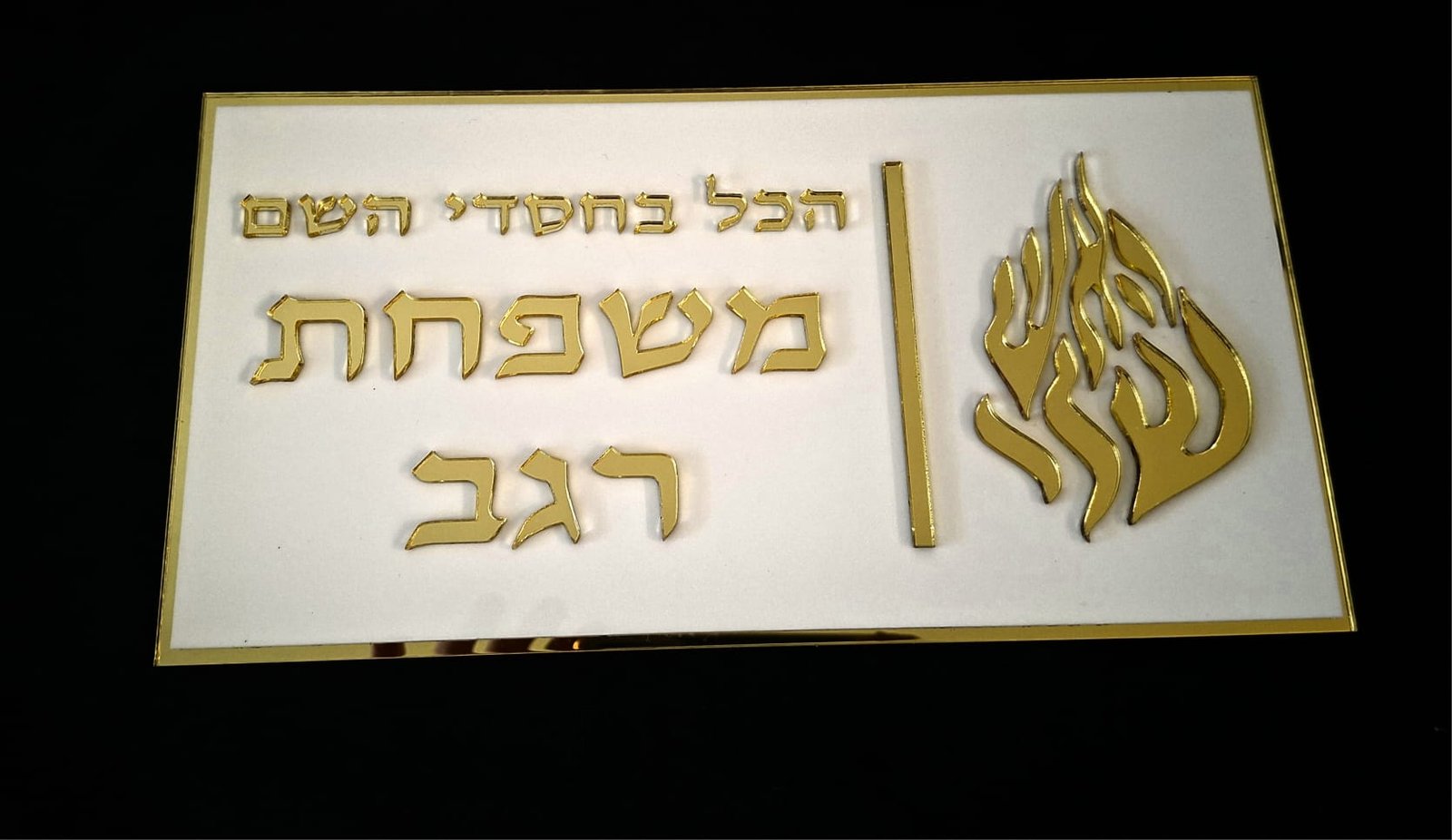 שלט כניסה האש שלי "הכול בחסדי ה' " ,לבן זהב