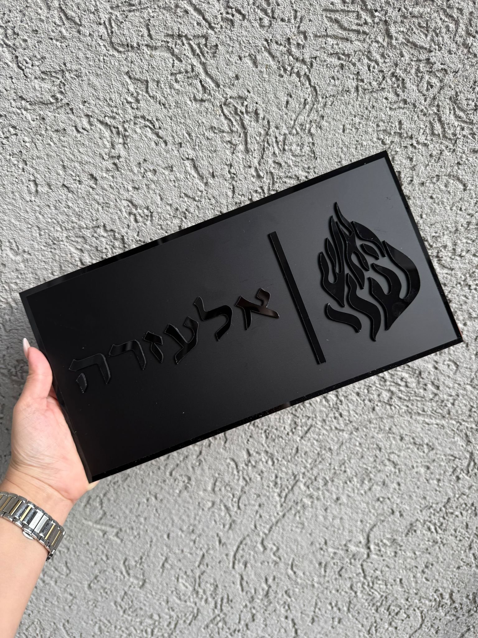 שלט כניסה לבית עשוי מפרספקט בחיתוך לייזר.